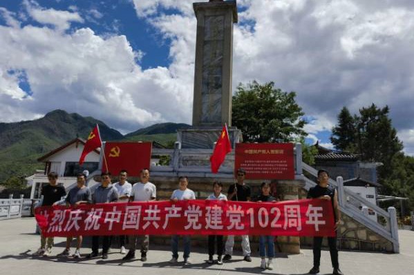7月1日,在中国共产党第102岁生日之际。第二直管项目部党支部组织丽江天润苑项目全体职工到红军长征过丽江指挥部纪念馆参观学习。